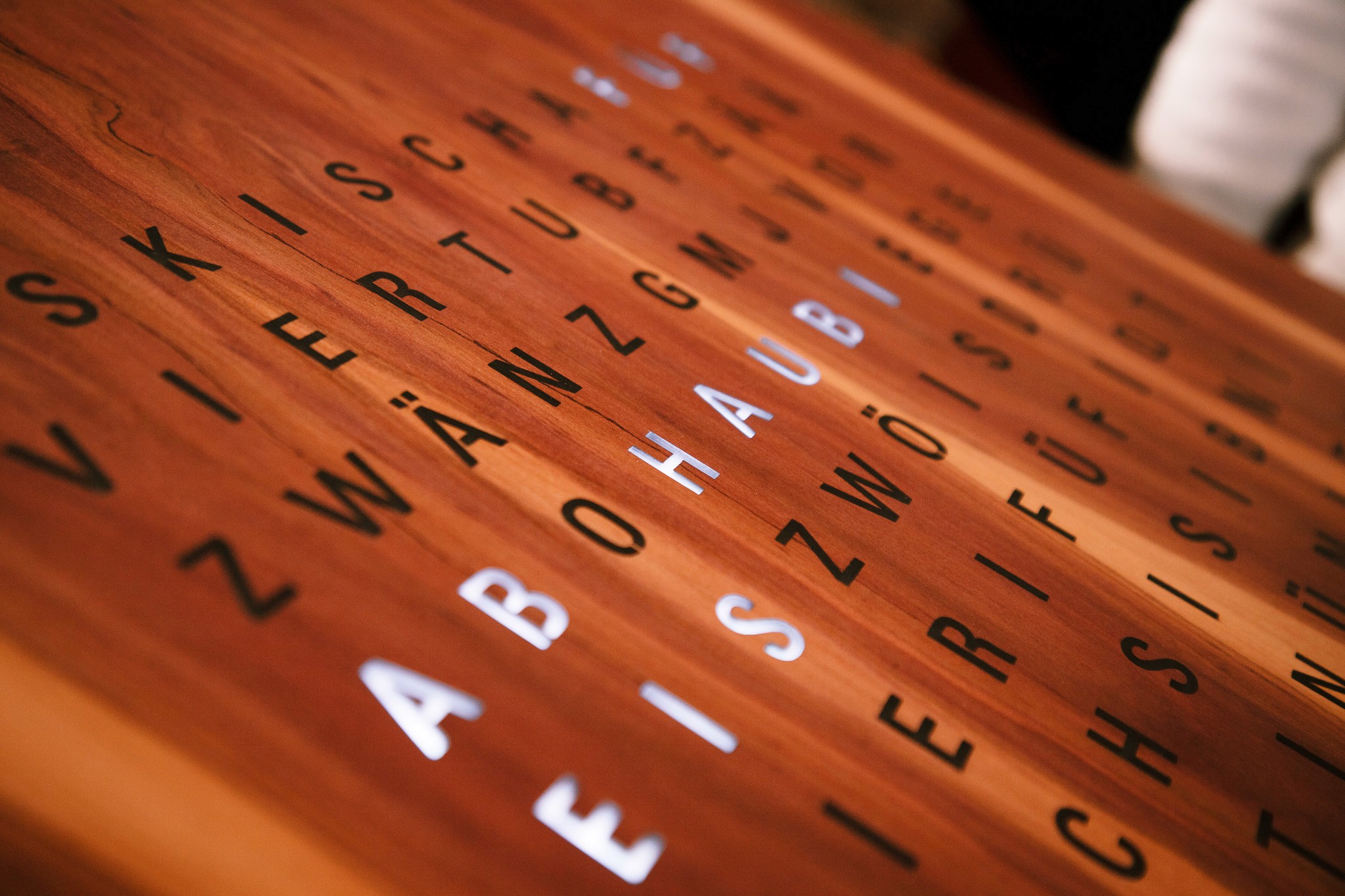 Vereinbare online einen Besuchstermin in der Schreinerei Bigler und entdecke die BERNORA Wortuhr live vor Ort.